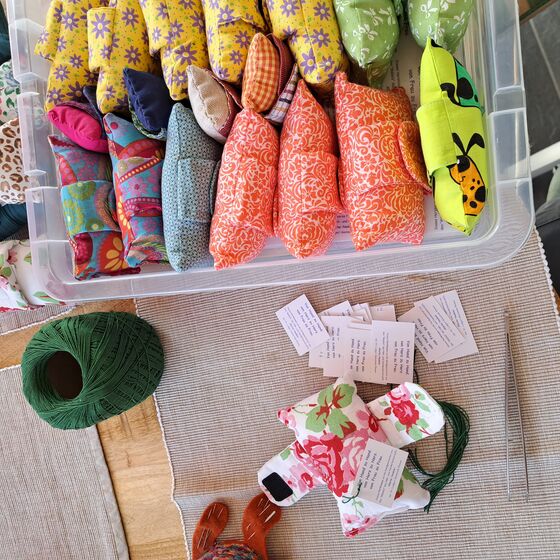 Es wurden Tatütas, Luftballon-Hüllen, Leseknochen, Murmelnestel, Glückswürmchen für die nächsten Aktionen genäht und natürlich wurde auch an eigenen Projekten weitergearbeitet